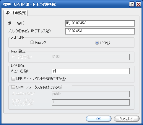 「ポート名(P)」には「IP_133.87.45.31」と自動記入されるが,変更しなくてよい.