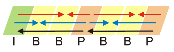 上述のような特徴をもった各フレームによる動画圧縮を GOP という単位 で行います(GOP は Group Of Picture の略です)。GOP は I ピクチャ から次の I ピクチャまでです。この GOP と I,P,B の構造を駆使すれば 画像の高圧縮が期待されます。ただ、差分の計算をすることになります ので、あまり複雑?にするとエンコードに大変時間がかかります。
