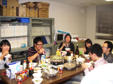 研究室秋の飲み会.青柳君が研究室に復帰. |