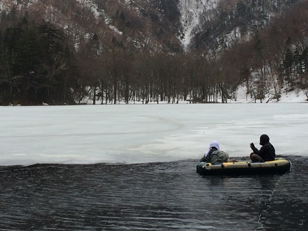 名大・半田先生(沢田の恩師)のプロジェクトで、名大・北大・吉林大学との共同研究で、中国東北部(旧満州)吉林省のダブス湖調査を行いました.沢田が掘削隊のリーダーとなり、極寒(-30℃以下)の湖水が凍結した氷上で湖底堆積物の掘削を行いました.2本の堆積物コアを採集した後、長春にある吉林大学キャンパスでサンプリングなどの作業をしました.
